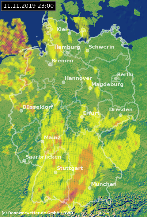 Radarbild von Montag, 11.11.2019 um 23.00 Uhr
