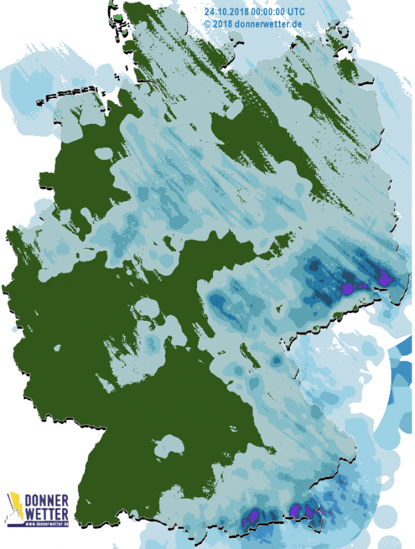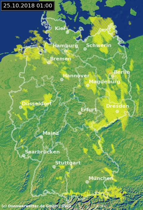 Radarbild von Donnerstag, 25.10.2018 um 01.00 Uhr