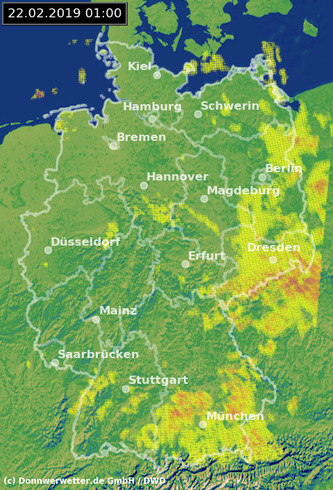 Radarbild von Freitag, 22.02.2019 um 01.00 Uhr