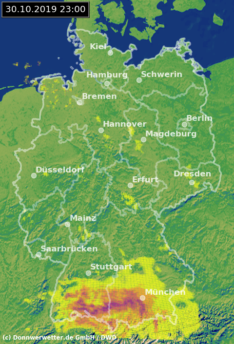 Radarbild von Mittwoch, 30.10.2019 um 23.00 Uhr