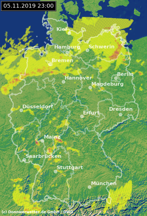 Radarbild von Dienstag, 05.11.2019 um 23.00 Uhr