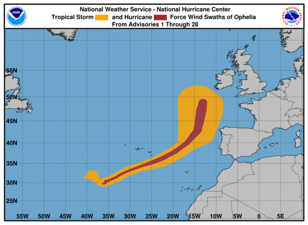 Es dauert nun nicht mehr lange bis der ehemals Kategorie-3-Hurrikan "Ophelia" die Insel erreichen wird. Es wird starker Regen und Orkan erwartet. In Irland ist man Sturm gewöhnt, aber einen Wirbelsturm gab es dort seit Beginn der Wetteraufzeichnungen noch nicht.
