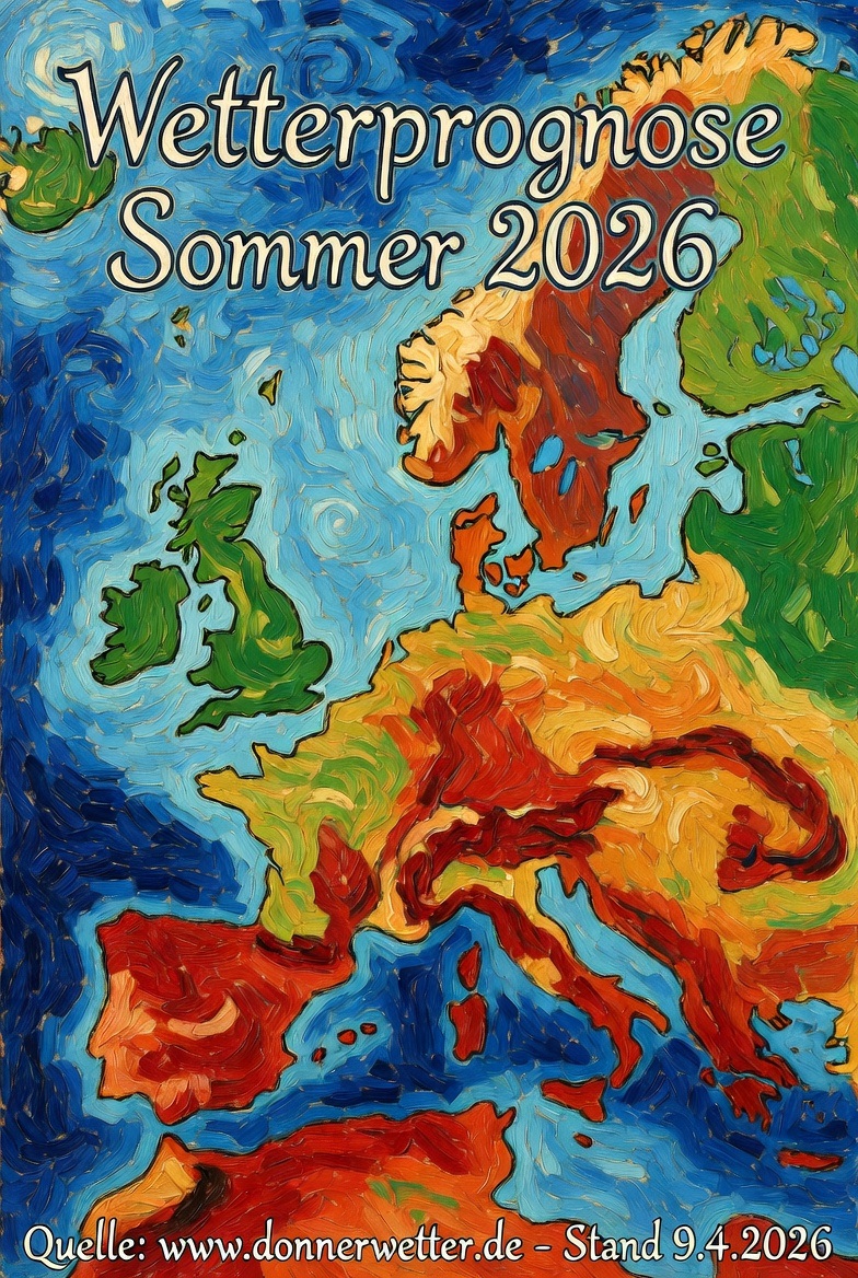 Diese Regionen sind flächig orange gemalt. Das bedeutet einen warmen, aber wechselhafteren Sommer. Die Temperaturen liegen oft +1,0 bis +1,5 Grad über dem Durchschnitt. Unterbrochen wird dieses Orange oft durch kleine blaue Farbspritzer – das sind die Regionen mit erhöhtem Unwetter- und Starkregenrisiko durch die El-Niño-Feuchtigkeit.