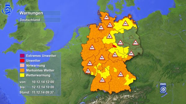 Für weite Teile der Republik bestehen derzeit Wetterwarnungen, bzw. Warnungen vor markantem Wetter. Von Warnungen ausgenommen sind zur Zeit allein Teile Ostdeutschlands.