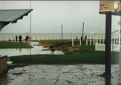 Das Bild zeigt Zerstörungen nach einer Sturmflut 1998 in Cuxhaven.