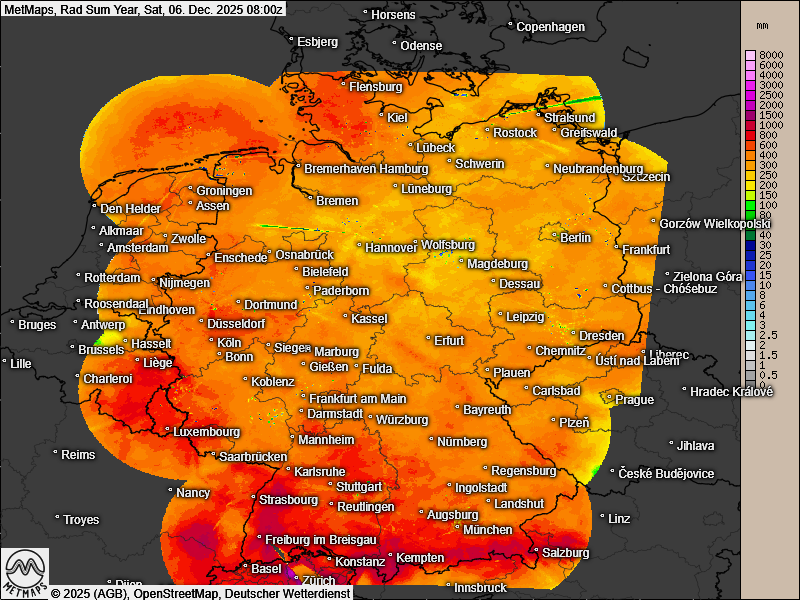 Die Karte zeigt die aufaddierten Jahresregenmengen bis zum 06.12 für Deutschland: