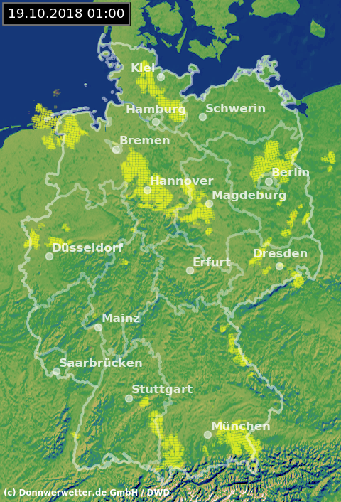 Radarbild von Freitag, 19.10.2018 um 01.00 Uhr