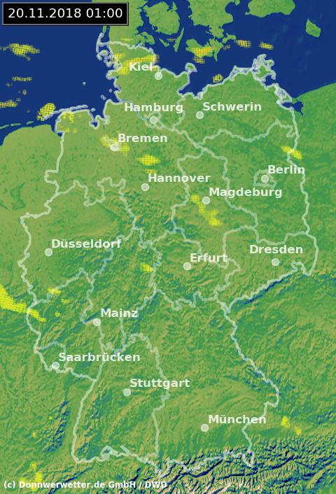 Radarbild von Dienstag, 20.11.2018 um 01.00 Uhr