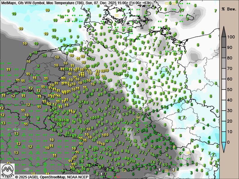 Die Strömungs- / Temperaturkarte Europa für Sonntagnachmittag sowie die GFS-Wetterkarten-Plots bis Sonntag: