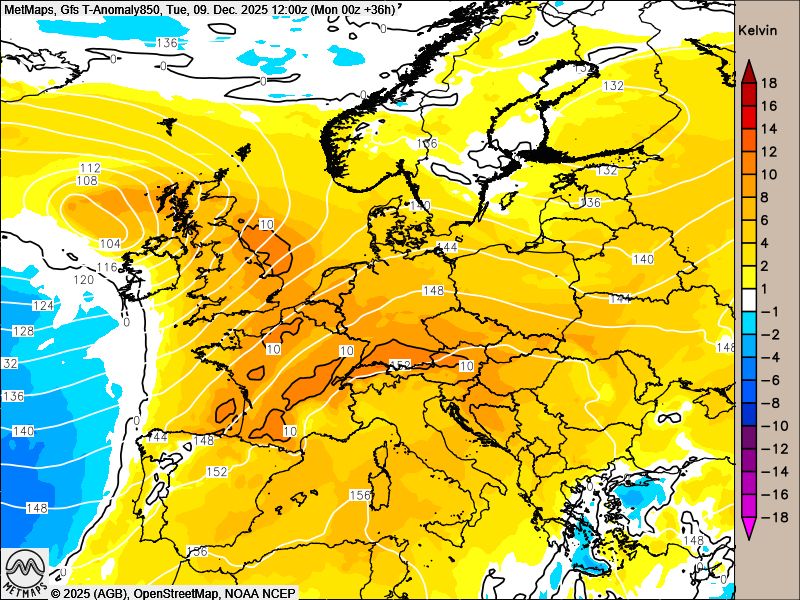 Die Wetterkarten mit der ausgeprägten Wärmephase über Europa, inklusive rekordverdächtiger Werte in der unteren Atmosphäre (850 hPa-Niveau):