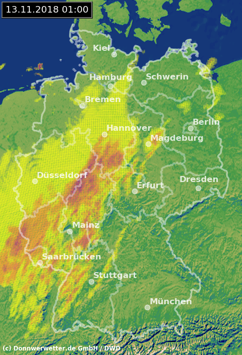 Radarbild von Dienstag, 13.11.2018 um 01.00 Uhr